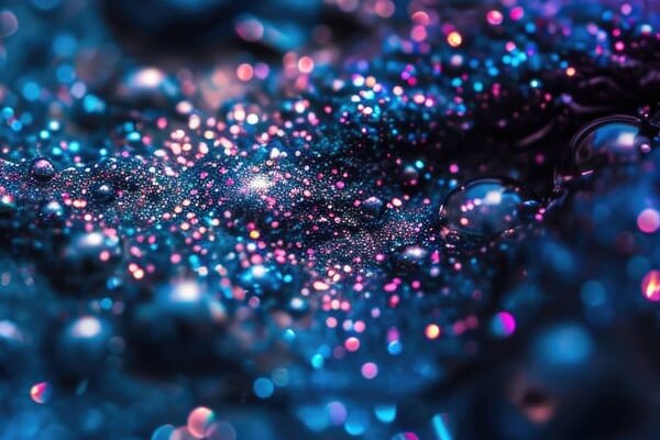 боке, блеск, сверкать, абстрактный, розовый и синий, текстура, блестящий, световые эффекты, яркие цвета, крупный план, макрос, ИИ искусство