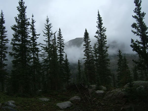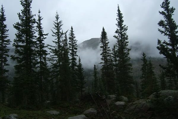 небо, деревья, камни, природа, горы, туман