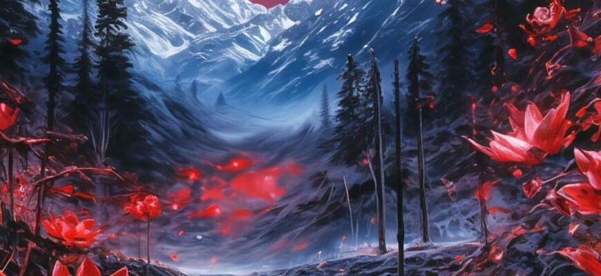 Полная луна над горным хребтом